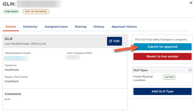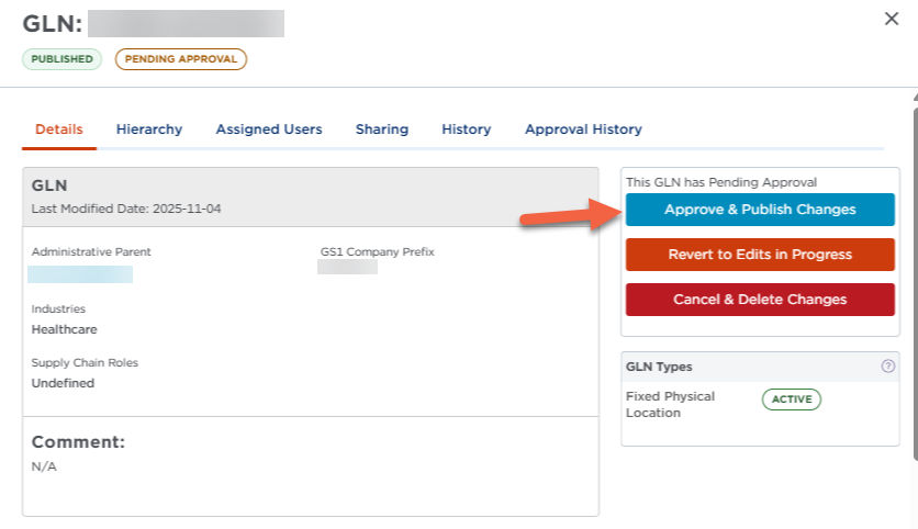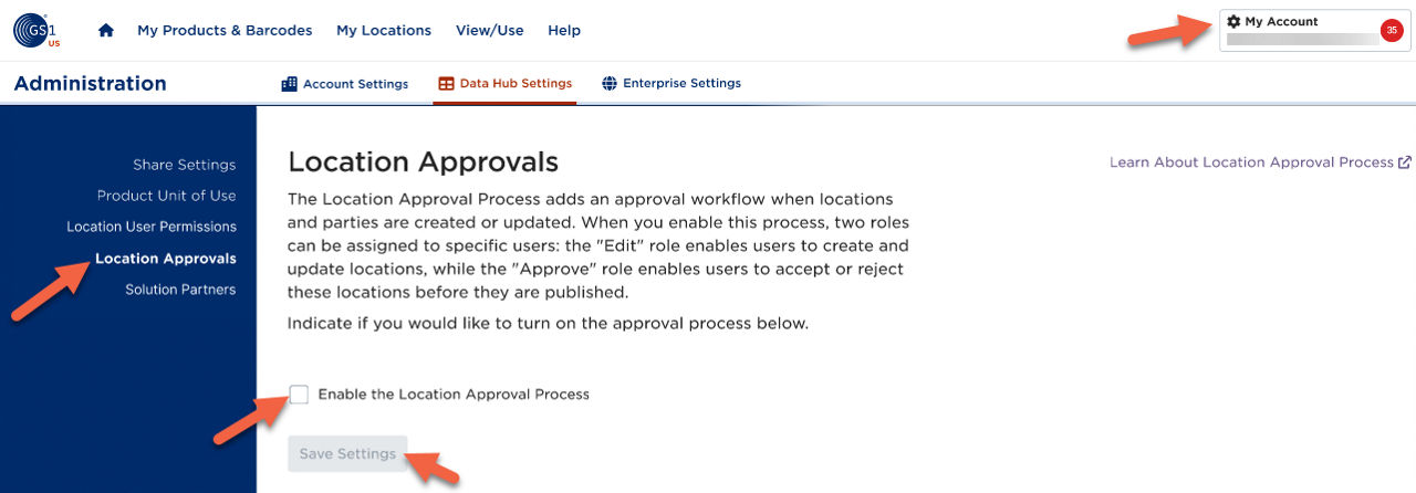 GS1 US Data Hub® provides a “Location Approval Process” that enables your organization to apply an approval workflow when locations and parties are created or updated.